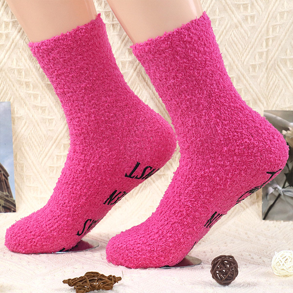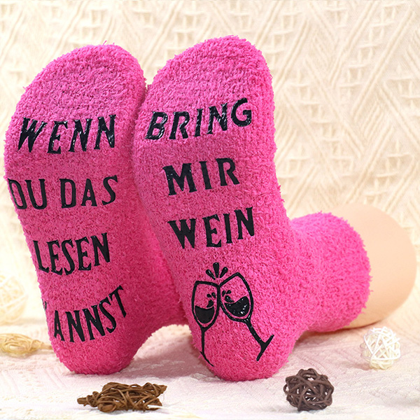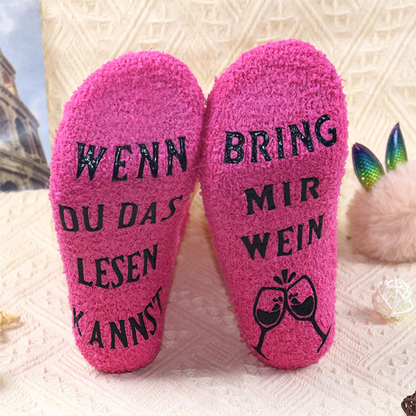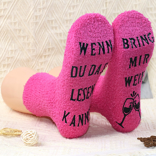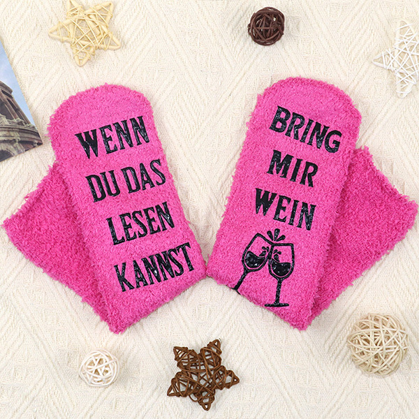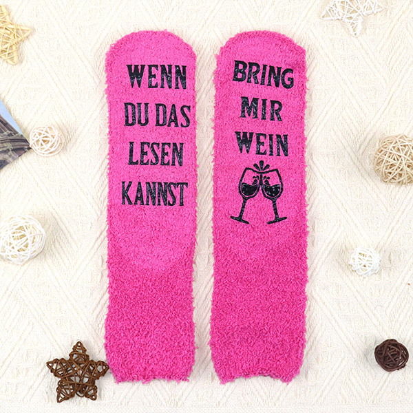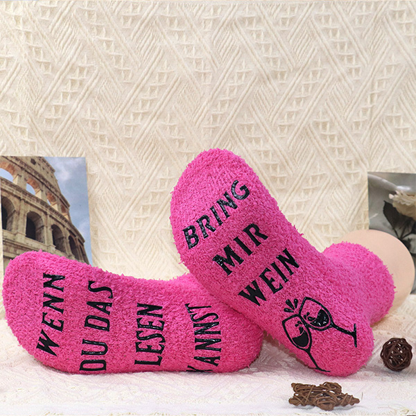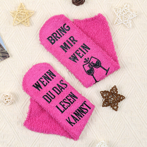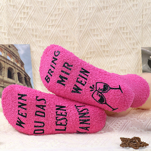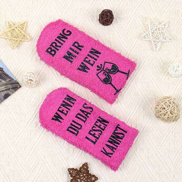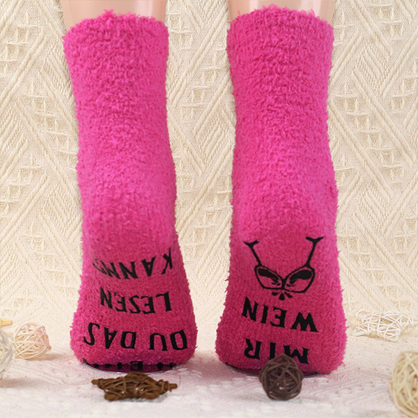 Cute Wine Glass Letter Printed Anti-slip Plush Socks