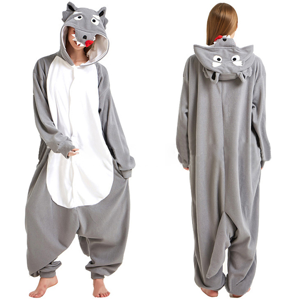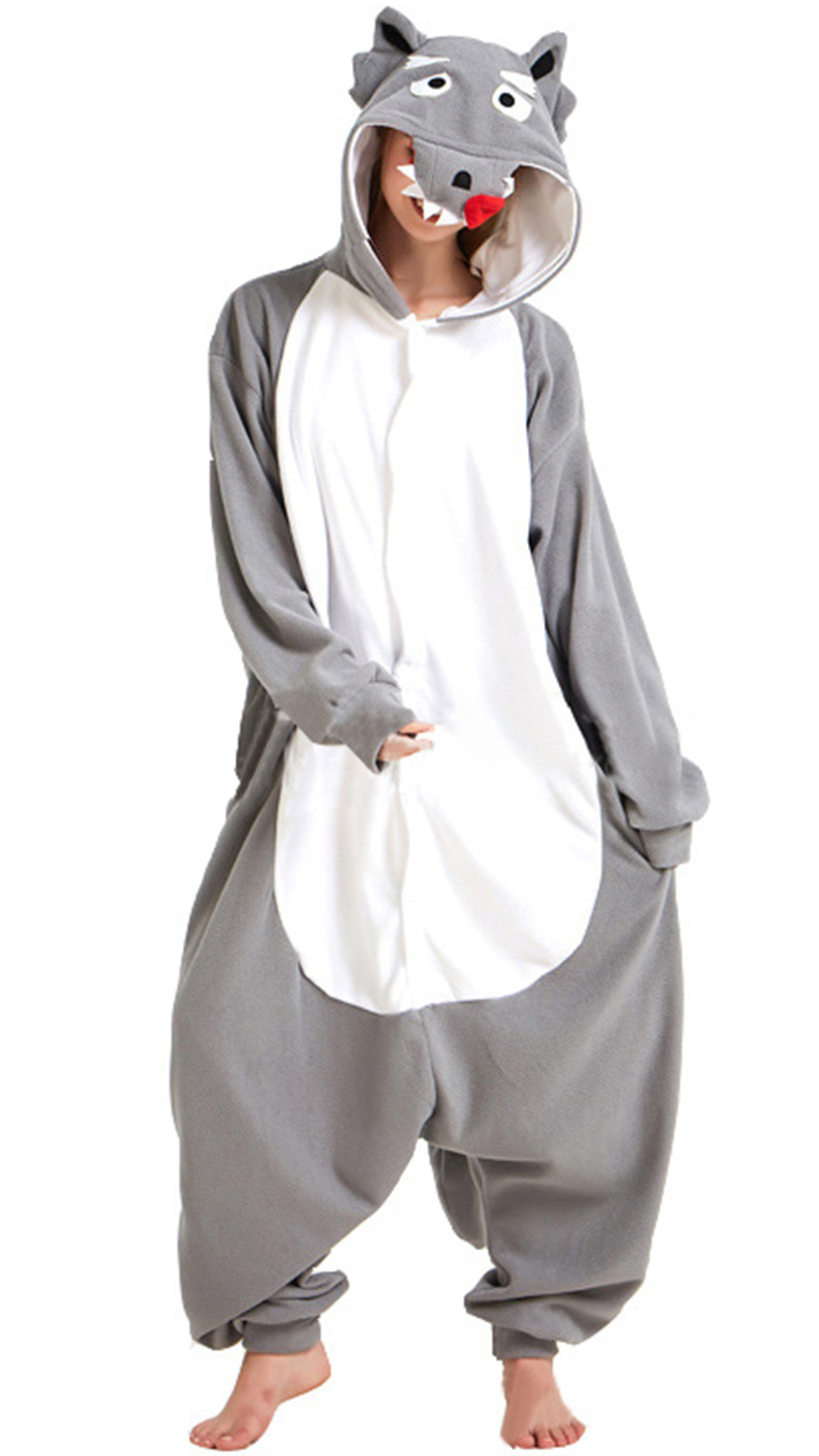 For your home time,you can trust in this one-piece pajama to maintain your cute and playful vibes. Contrast color element and wolf shape design will add some visual effect. The loose silhouette and polar fleece fabric can ensure the comfy and warmth. You can also make it as the perfect Halloween or Christmas gift for your friends or yourself.