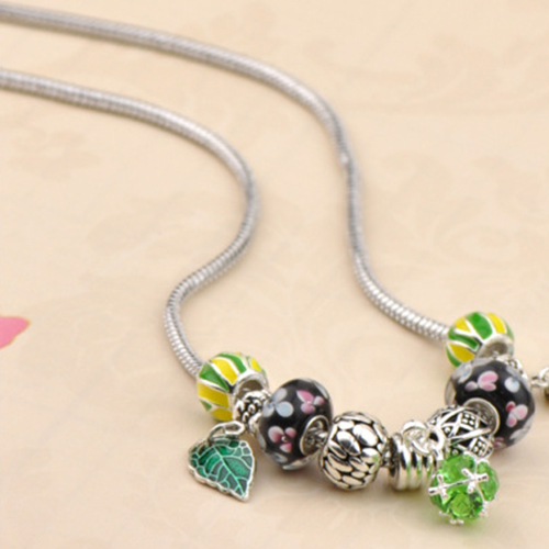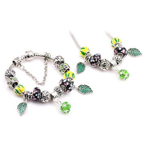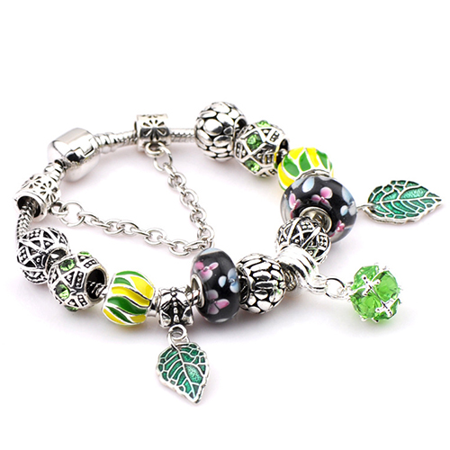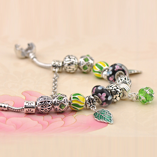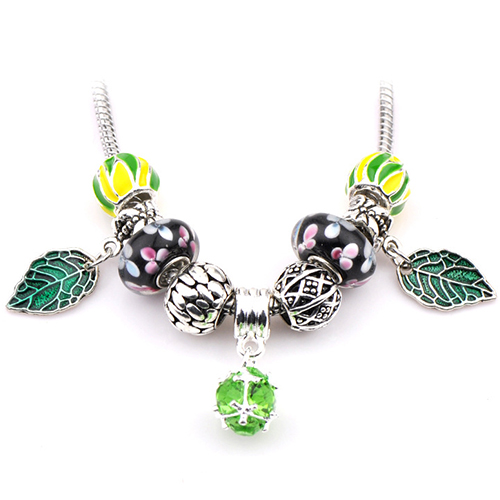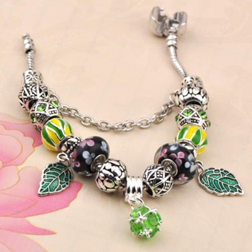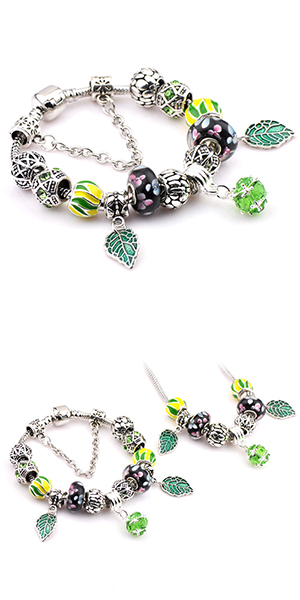 This bracelet gives people a fresh and stylish look. It is styled with rhinestone leaf beads patterns,