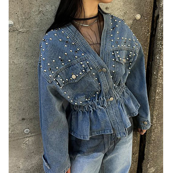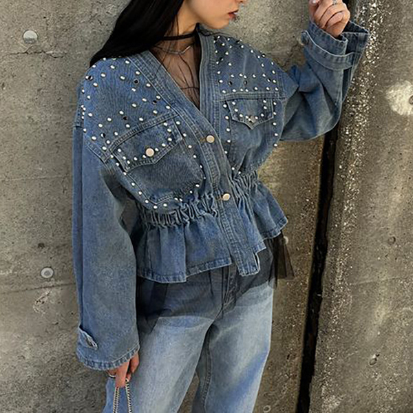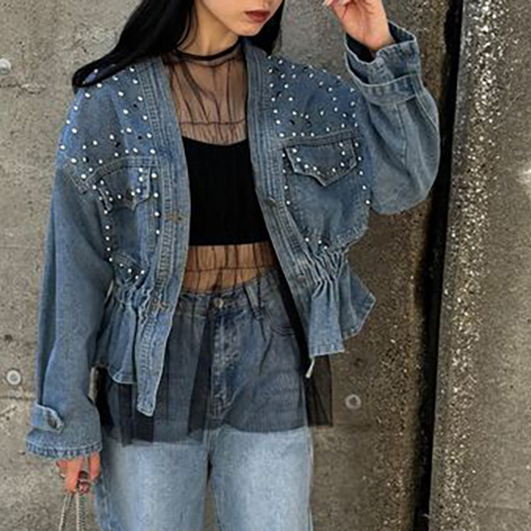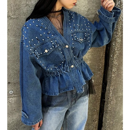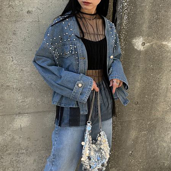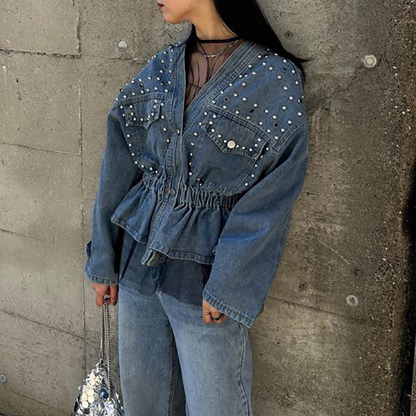 Denim Jacket featuring Rhinestone and Bead Embellishments