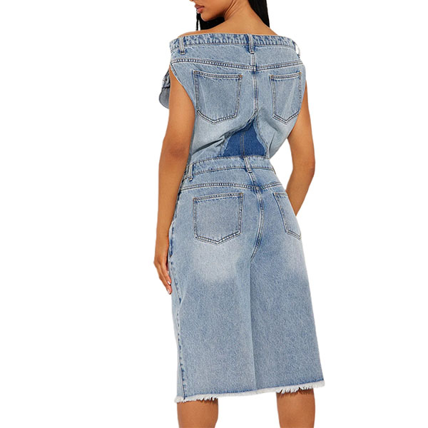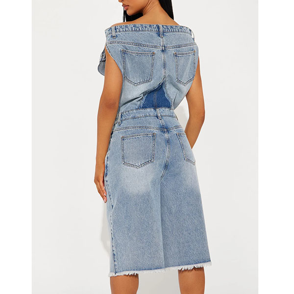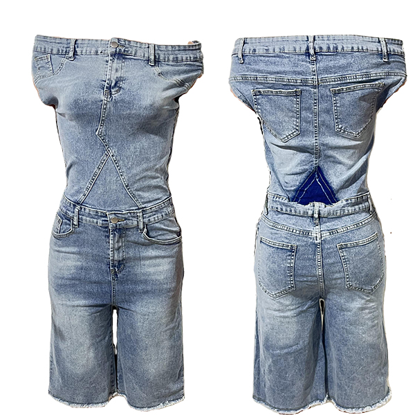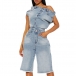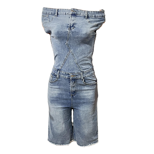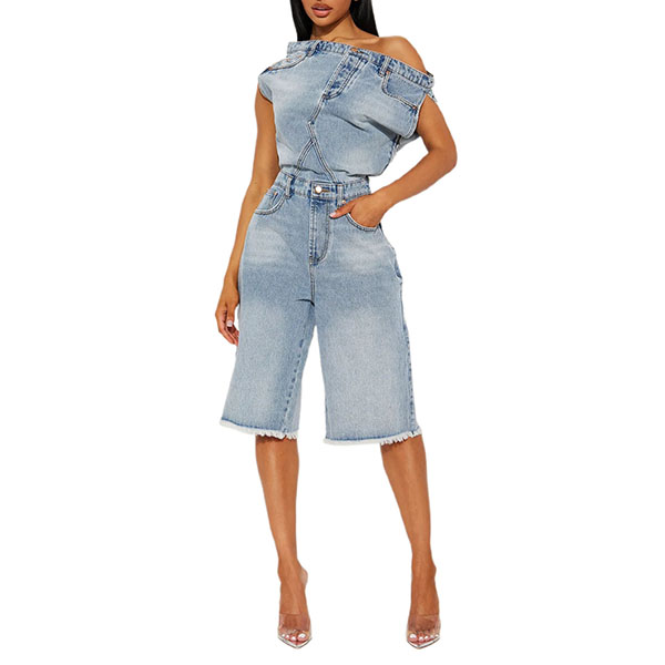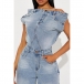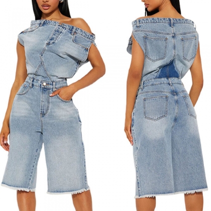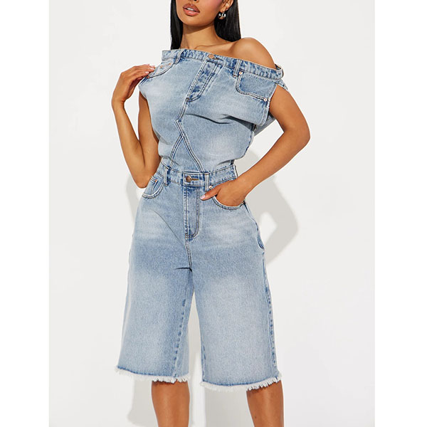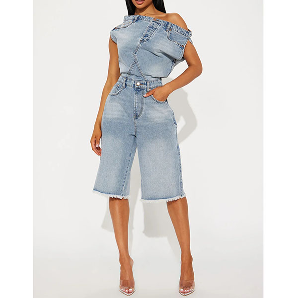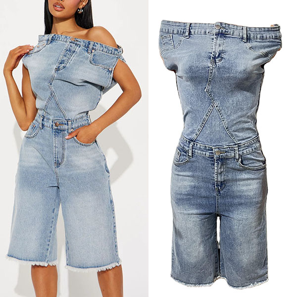 Denim One Shoulder Strapless Jumpsuit Slim Fit