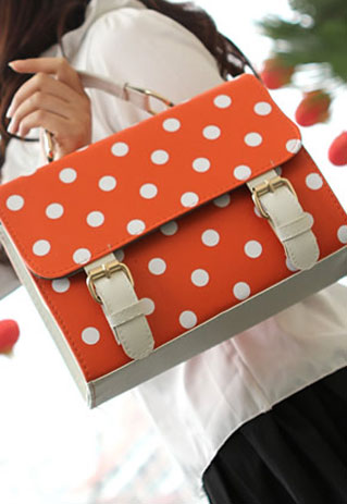 Fashion gals, wanna a beautiful bag to be your outdoor companion? You could choose this bag. It features the polka-dot print that make it looks cute and stylish. The candy color design makes it eye-catching and brilliant. It has option strap, you can use it as a clutch bag or a shoulder bag.