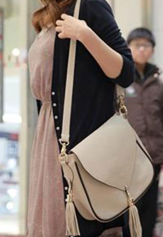 This bag has a retro vibe and features an envelope look,a solid colorway and is adorned with three tassels and easily adjust the shoulder strap to perfectly fit you.It suits your school,work and play.