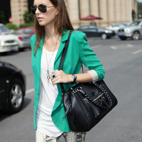 Motor style could also be simple and unique. Look at this Solid Color Handbag, the braid strap-retro and classical. Solid color way-simple but not simplex. Optional strap that you could use it as a handbag or a shoulder bag. Like it?