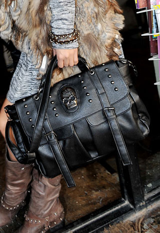 You are known to your friends for your sweet style. Wanna try a new style to make you refresh? How about the punk style suit? It features the rivet and the rivet design that is very cool and stylish. And the skull decoration add cute and cool element to the bag. This black handbag is made of high quality PU, which is durable and fastness. Slung it on your shoulder, you must one of the most fashionable one in the street.