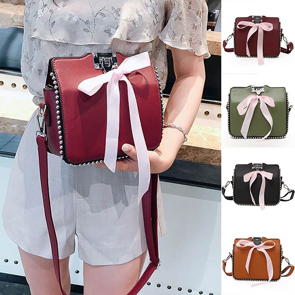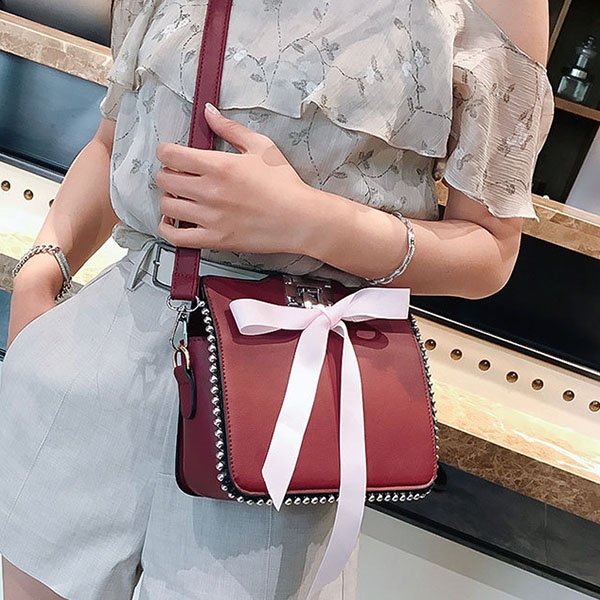 Sweet Style Bowknot Beaded Shoulder Messenger Bag