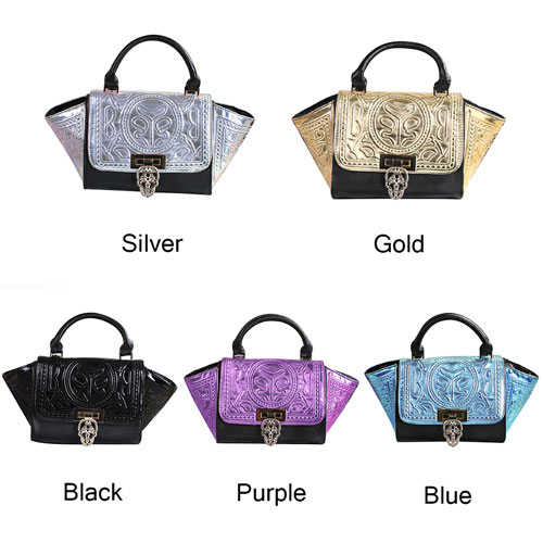 With a faux leather exterior and all-over skull head print interior,the quirky tote bag will instantly add style to your any outfit and is sure to hold all your essentials,from your phone to your makeup bag.