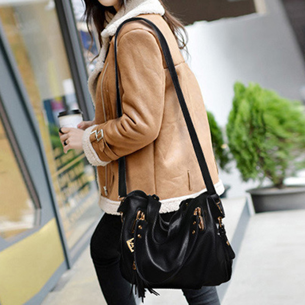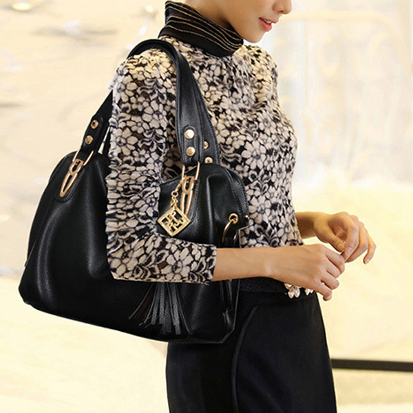 Elegant Solid Color Fringed Pendant Handbag Shoulder Bag