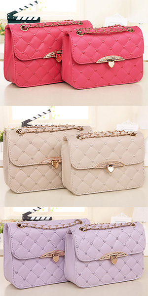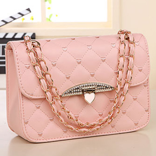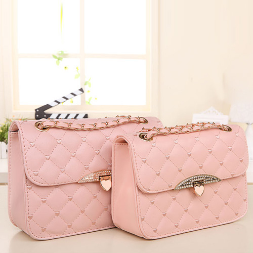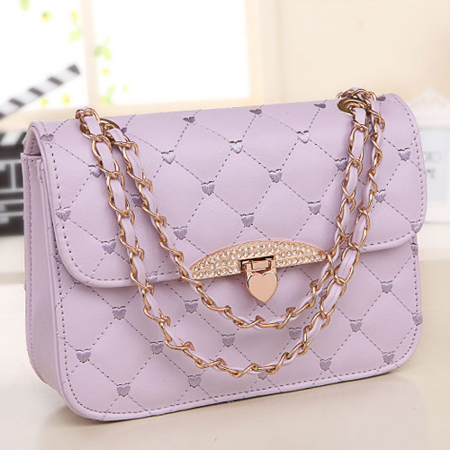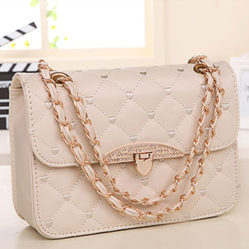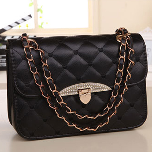 Fashion Rhinestone Hasp Quilted Shoulder Messenger Bag