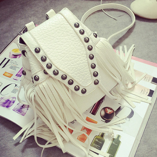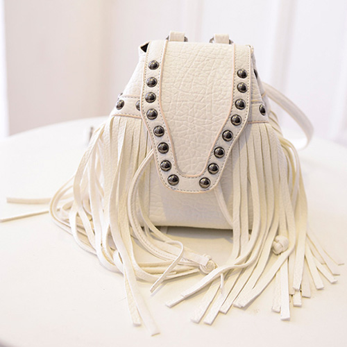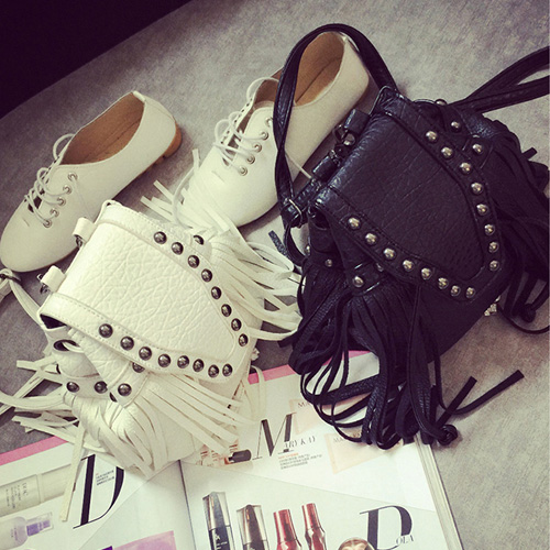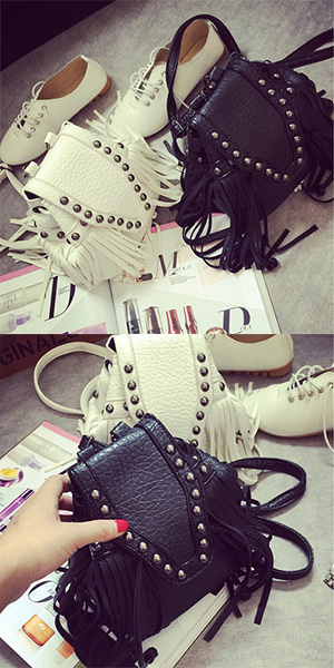 It features rivets and tassels design,looks so chic and stylish. Adjustable shoulder