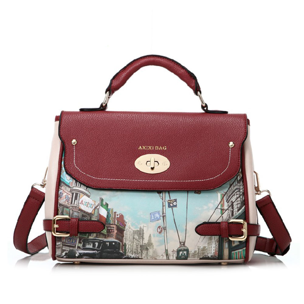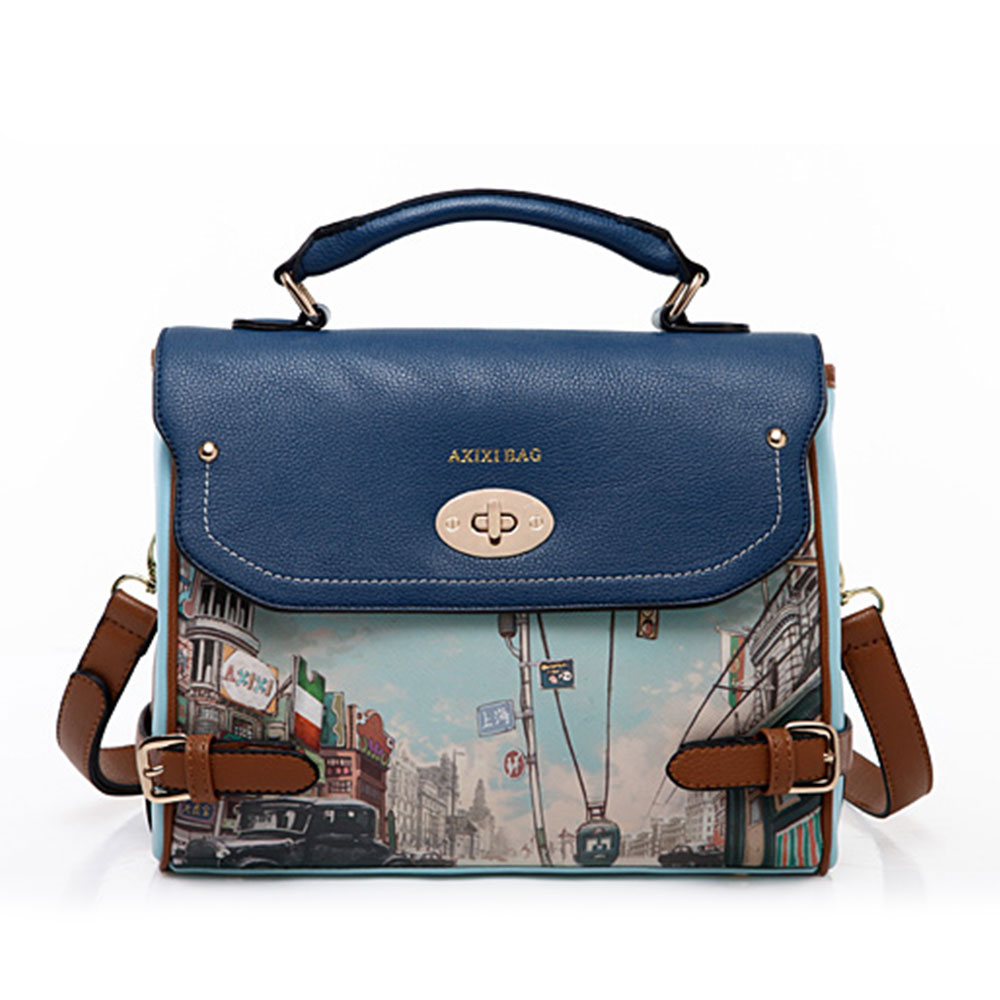 The Versatile Bag is instinct with retro and preppy vibe,featuring a city view print,contrast colored cover,handle and bukle detais.This bag is the perfect size to carry with you anywhere and keep you fashionable while you're on the go.