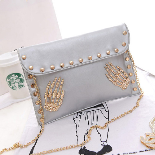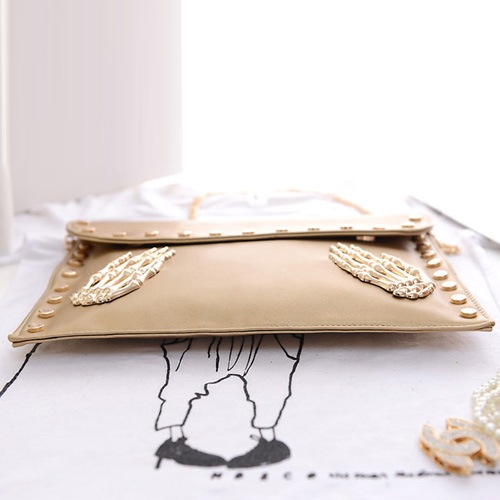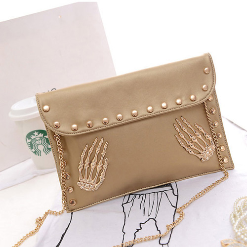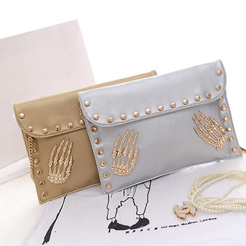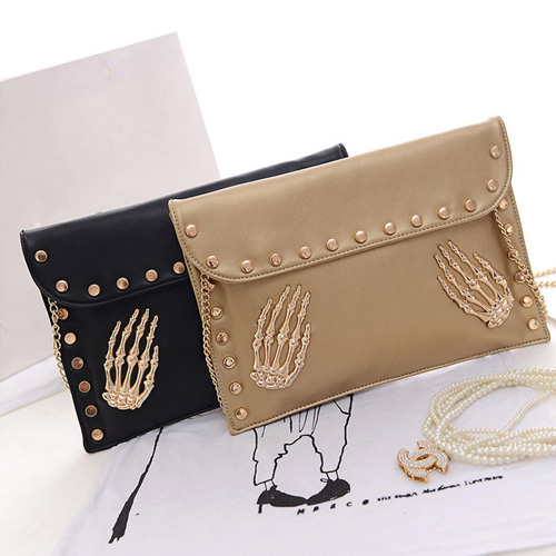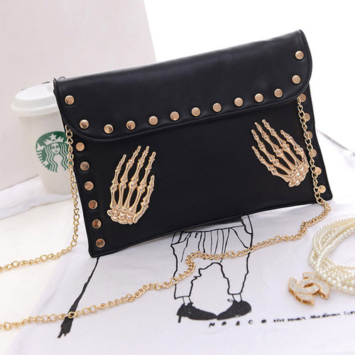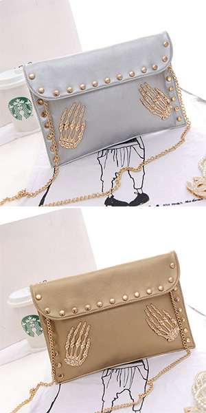skull hands design makes it more chic and unique. Chain shoulder strap is adjustable,