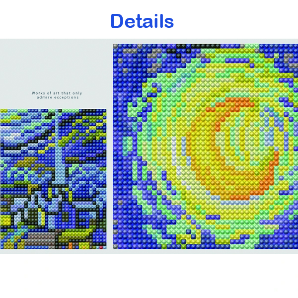 Experience the enchanting beauty of Van Gogh's masterpiece with our Starry Night diamond painting kit. This breathtaking artwork features swirling skies, radiant stars, and bold brushstrokes, all captured in sparkling detail. Perfect for art enthusiasts and diamond painting fans alike, this kit allows you to bring a touch of timeless elegance into your home.