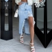 Distressed High-Waisted Denim Mini Skirt with Side Slits