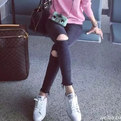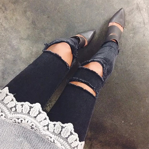 this jeans is a good way to culticate your slender legs. And its ripped details for more appeal. Match your favourite tops with this jeans.