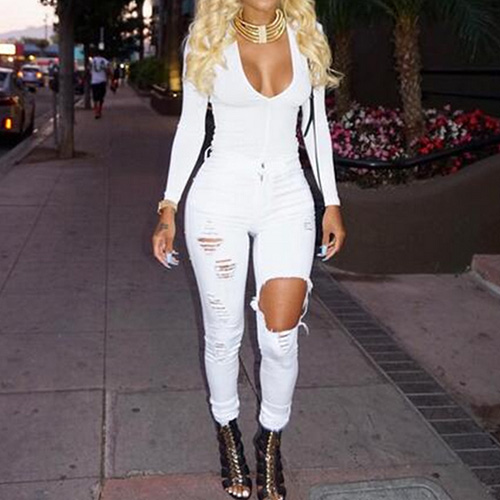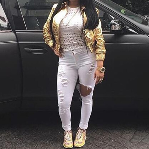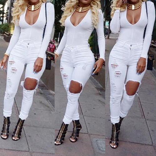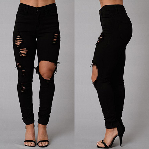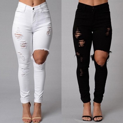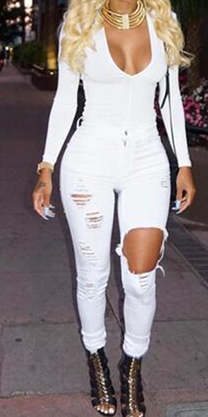 How could you lack of such a chic and stylish jeans in your closet? Distressed style,with ripped design.