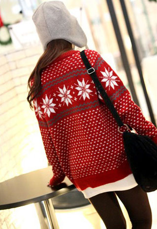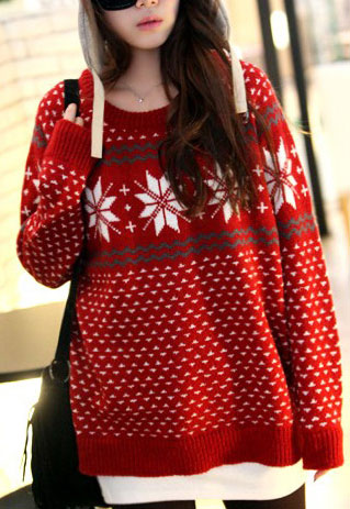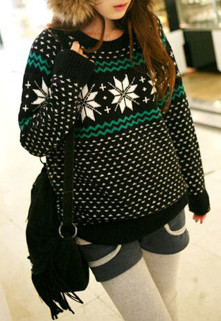 Christmas is coming. What ensemble would you like to wear to welcome this big favorite? Maybe you can choose this cute and stylish sweater. It adds few fashion prints into one-dot print, wavy stripe print, floral print which is very cute and sweet. Two colors: BLACK and RED, you can choose the one you like!