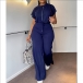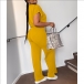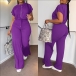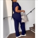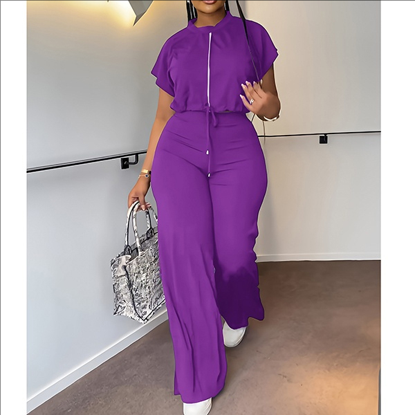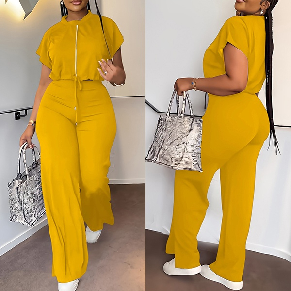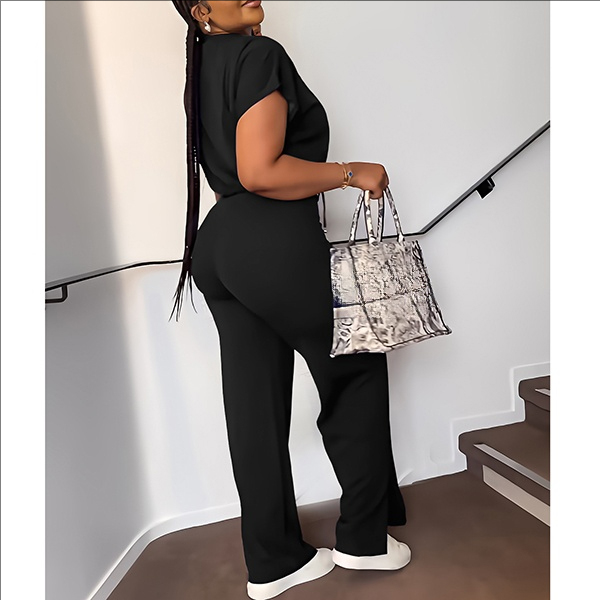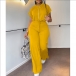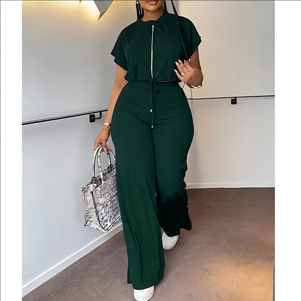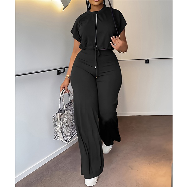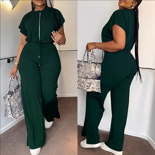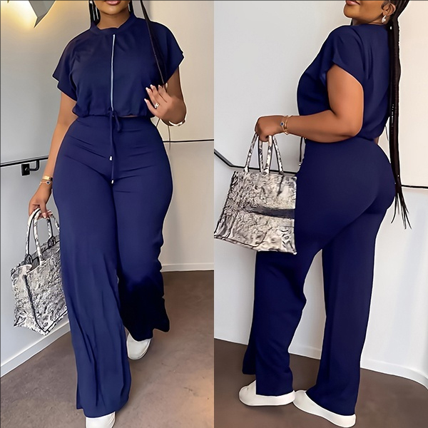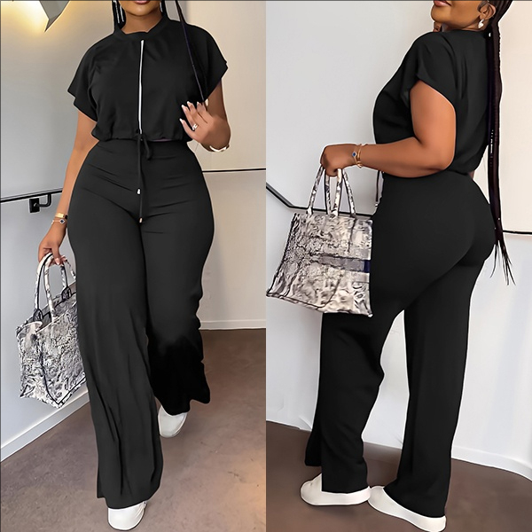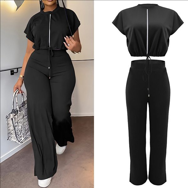 Drawstring Crop Top and High-Waist Slit Pants Two-Piece Set