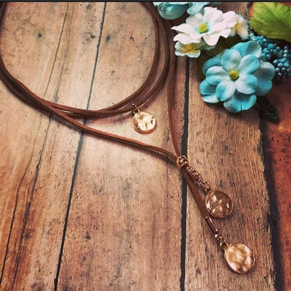 Edgy Boho Wrap Necklace -Black/Brown Faux Suede Layered Choker with Hammered Silver Coins