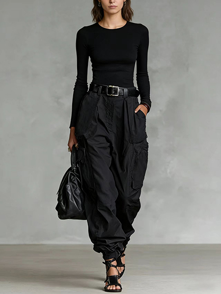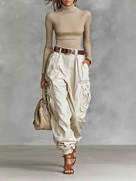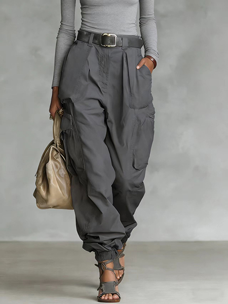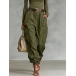 Effortless Urban Chic: -High-Waisted Utility Cargo Pants: Relaxed Fit Trousers with Multi-Pockets & Cuffed Hem
