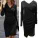 Featuring a sleek artificial leather splice, this dress adds a touch of luxe and modernity to your ensemble. The V-neckline enhances your décolletage and adds a hint of allure. The long sleeves provide a touch of modesty, while the irregular hemline adds a unique and stylish element. Wanna have a try?