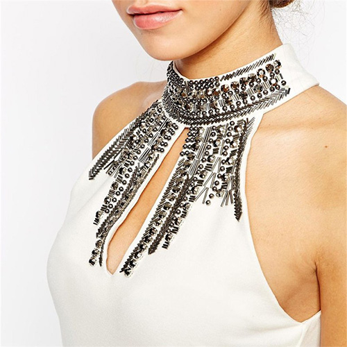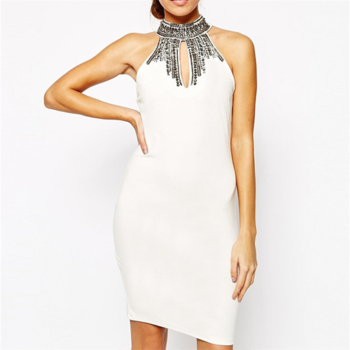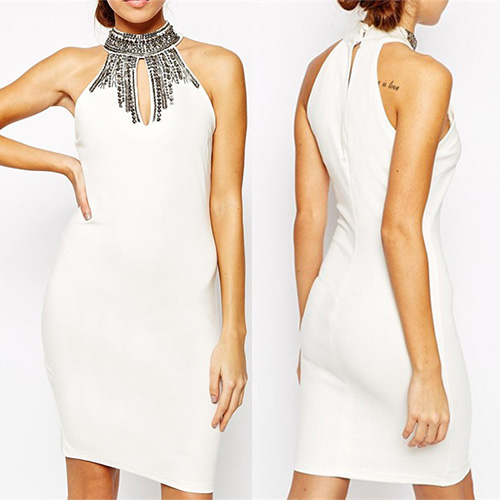 Elegant Beaded Halter Sleeveless Slim Fit Dress