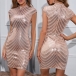 Elegant Bling-bling Sequin Mock Neck Sleeveless Bodycon Dress