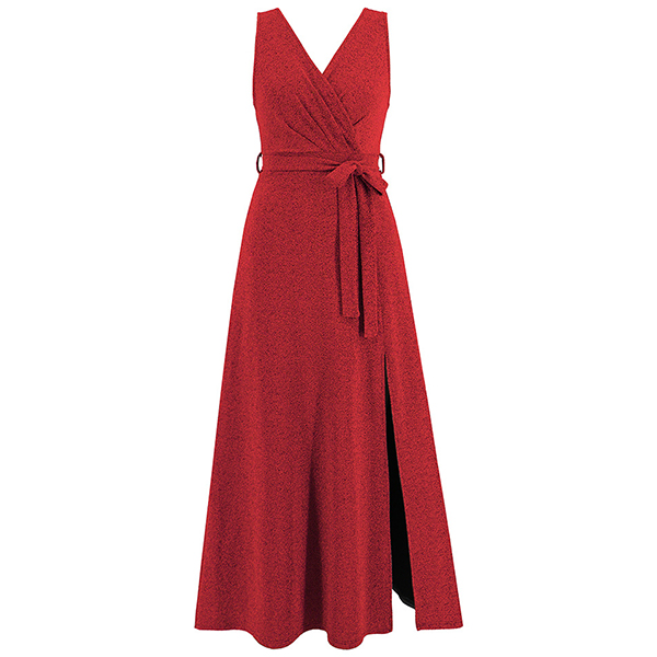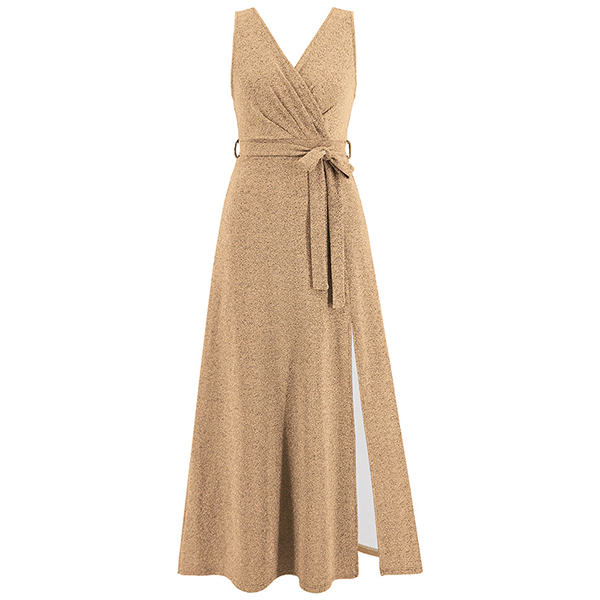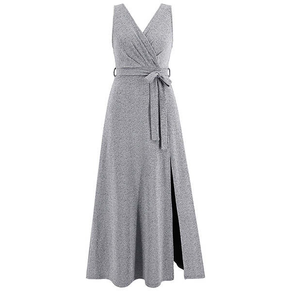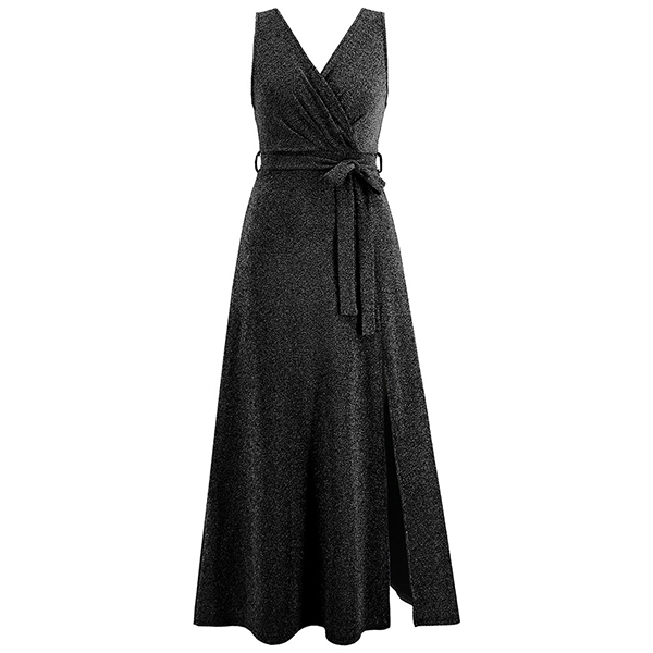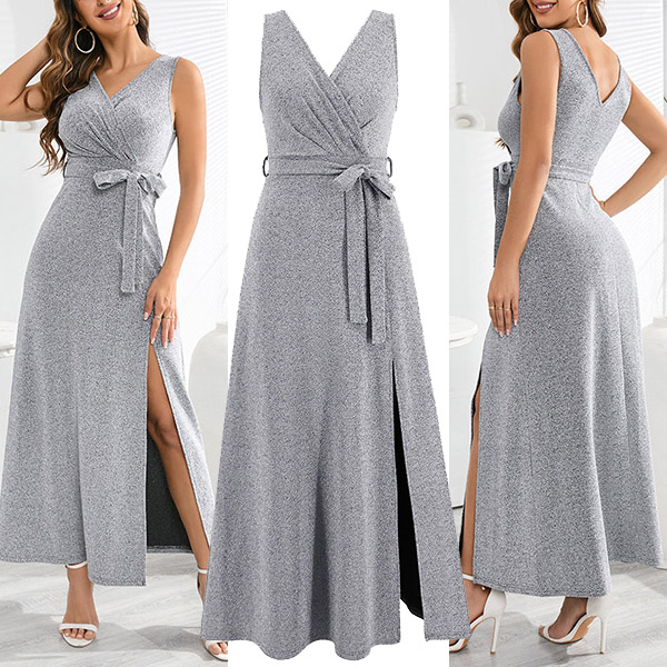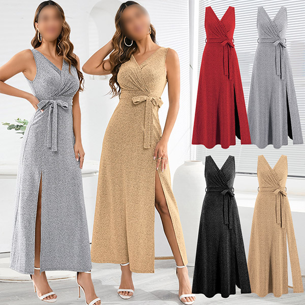 Elegant Bling-bling V-neck Sleeveless Self-tie Slit Dress