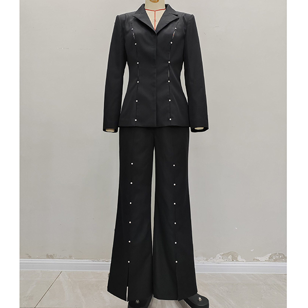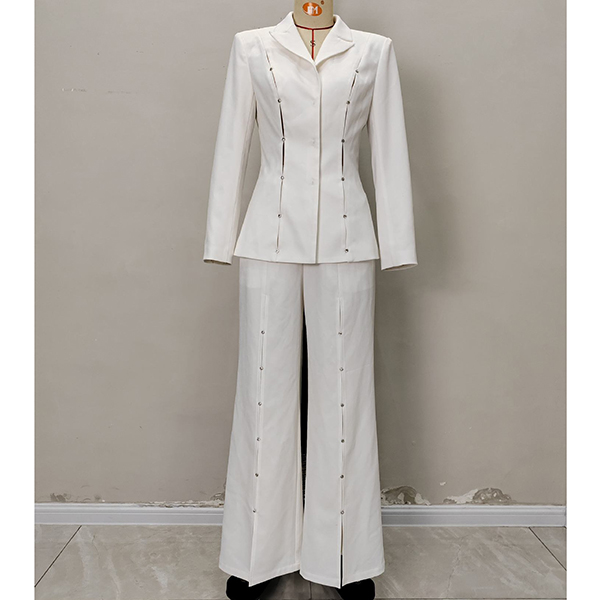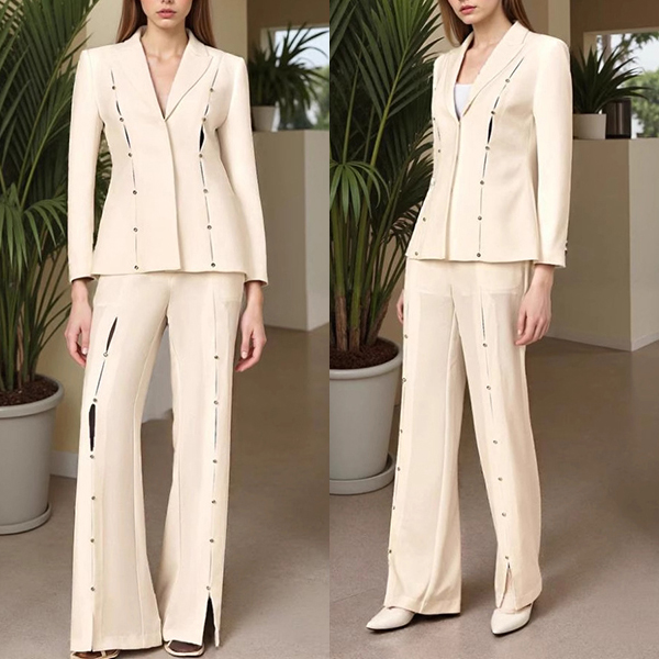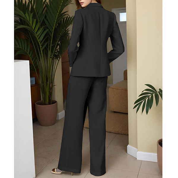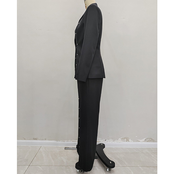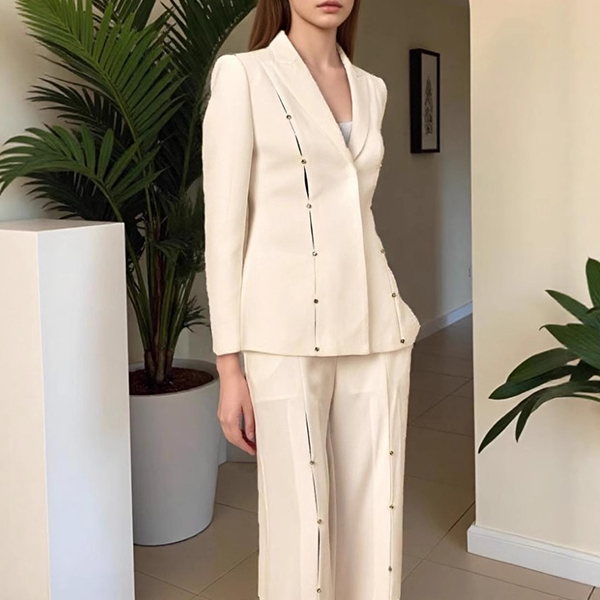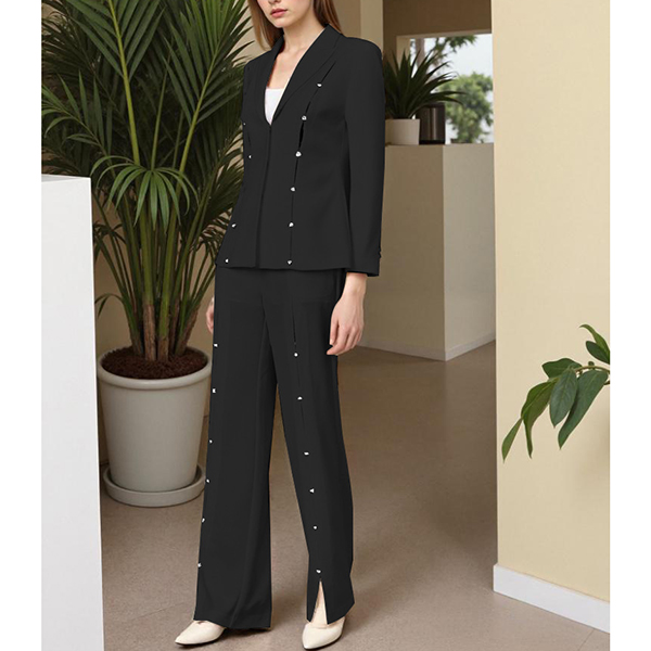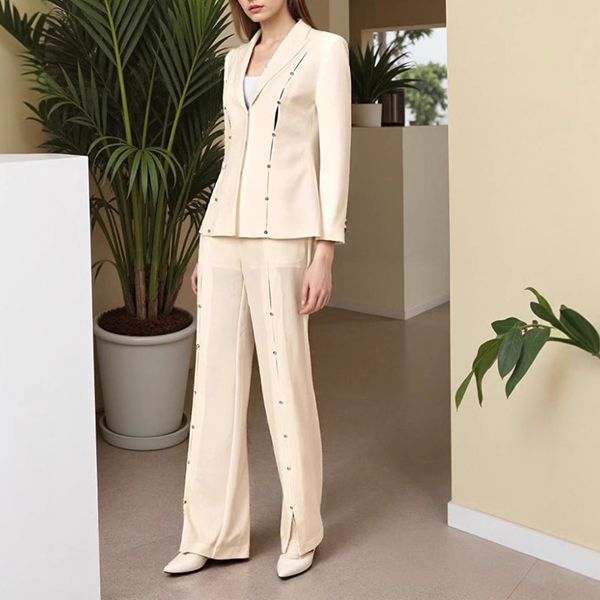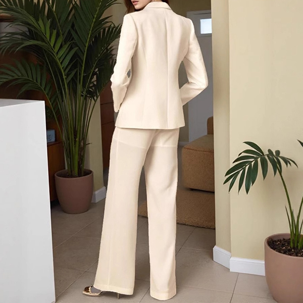Elegant Button Decoration Two-piece Suit Set Consist of Blazer and Straight-cut Pants