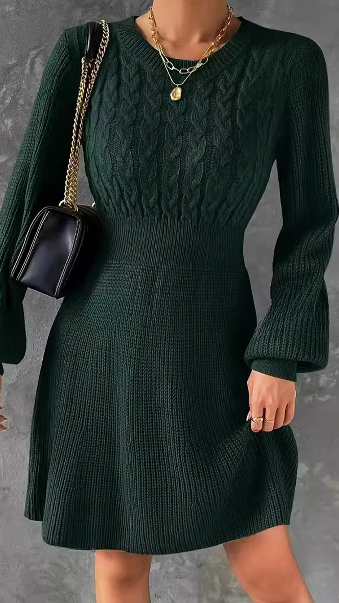 Make a chic and sophisticated statement with this elegant sweater dress. The cable pattern adds a classic and timeless touch to the dress, creating a cozy and stylish look. The lantern long sleeves provide a unique and fashion-forward silhouette, adding a touch of drama and flair to the dress. Pair this dress with tights and boots for a casual yet elegant outfit~