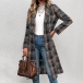 Elegant Contrast Color Checkered Double Breasted Notch Lapel Long Sleeve Duffle Jacket