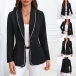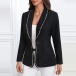 This blazer features contrast color design along the lapel, long sleeves, a tailored fit, and a chic design that is perfect for adding a touch of elegance to any outfit.