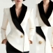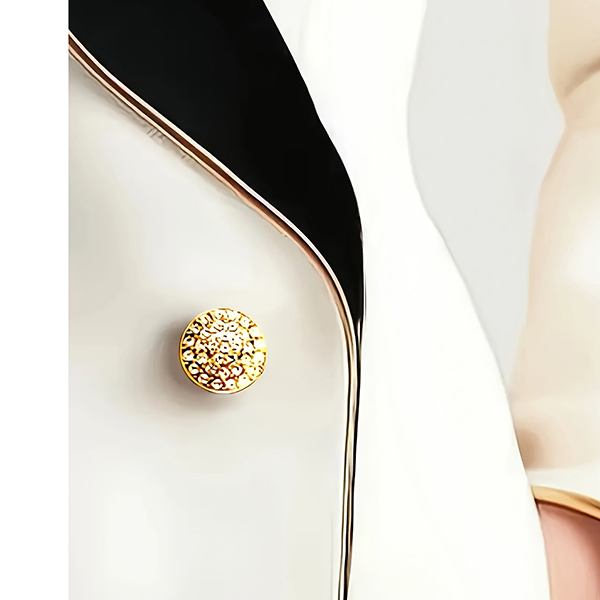 This distinctive jacket features vintage-inspired stand collar with contemporary irregular hemline for unique sophistication. The front button closure brings classic tailoring whilst the irregular cut creates modern asymmetrical appeal and artistic edge. Perfect for creative occasions, artistic events, or fashion-forward casual wear.