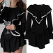 Elegant Contrast Color Ruffled Round Neck Long Sleeve Mini Dress