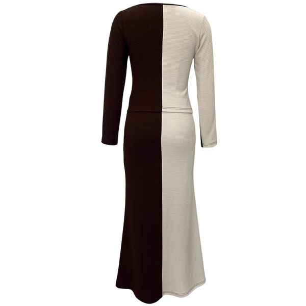 This set features a button vest and a maxi skirt in contrasting colors, creating a visually striking and elegant outfit. The button vest adds a tailored and structured element to the ensemble, while the maxi skirt offers a flowing and graceful silhouette. This two-piece set is perfect for both formal or semi-formal occassion where you want to make a stylish and elegant impression.