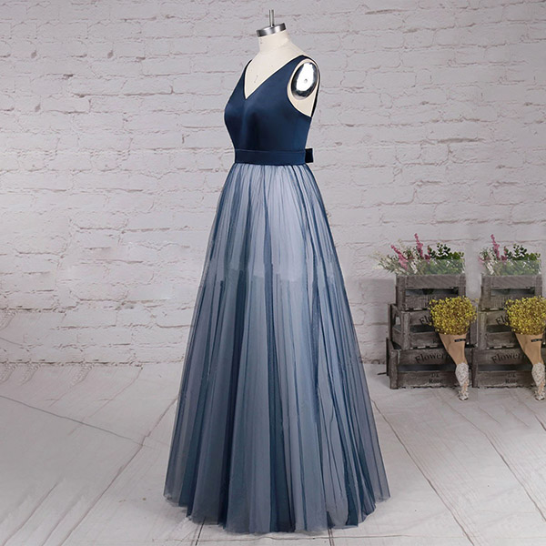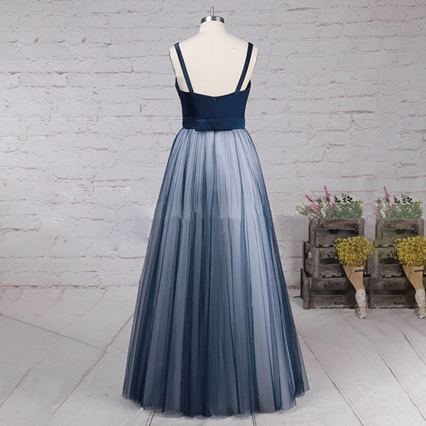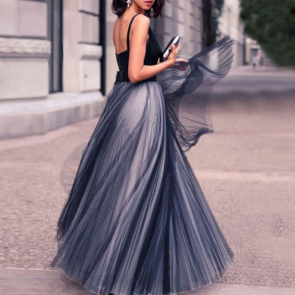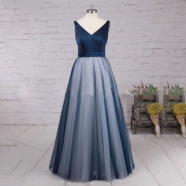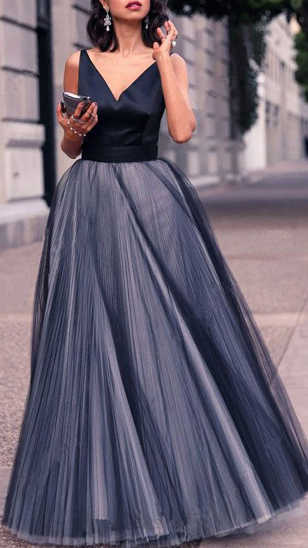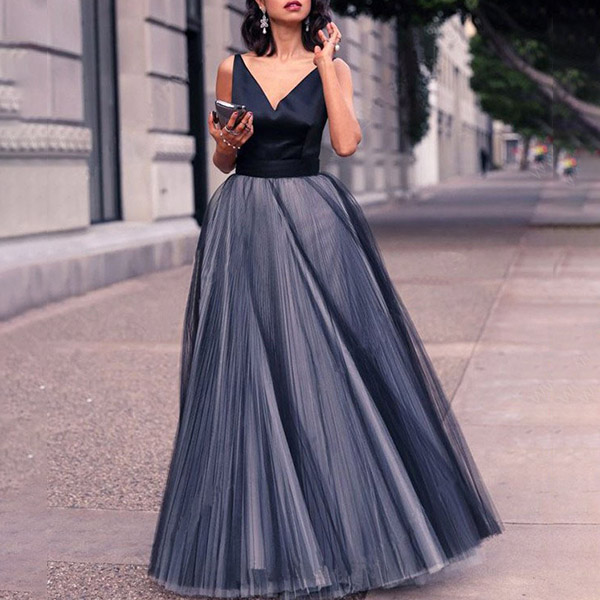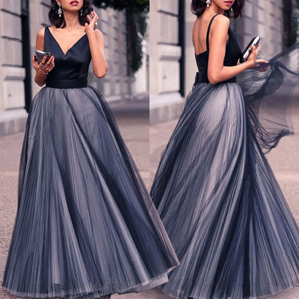 Elegant Contrast Color V-neck Gauze Spliced Backless Big-hem Party Dress Wedding Dress