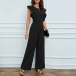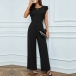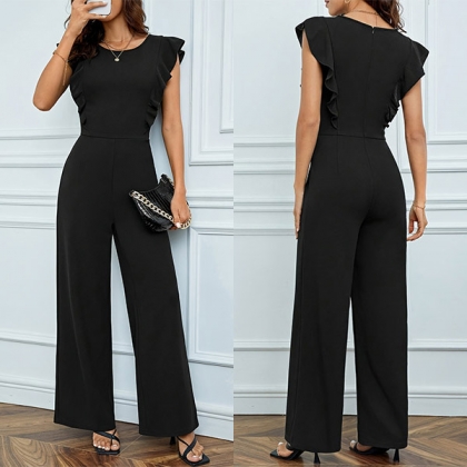 Elegant Crew Neck Ruffle Sleeveless Straight-cut Jumpsuit