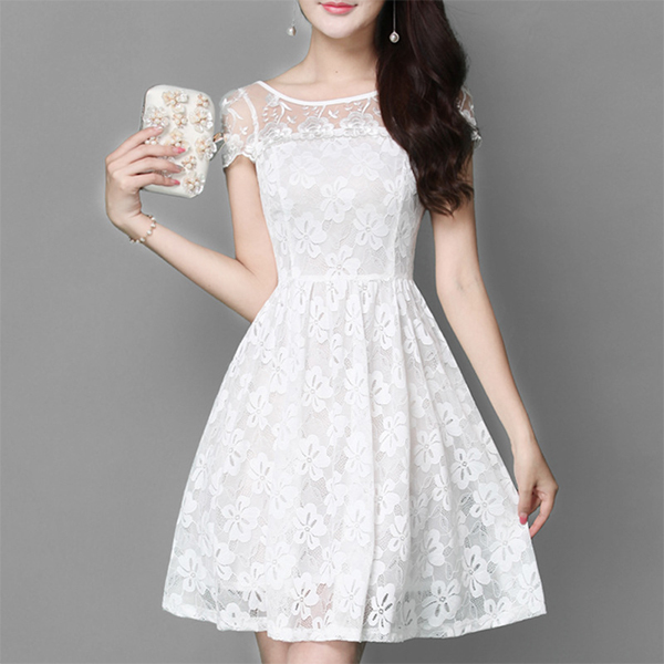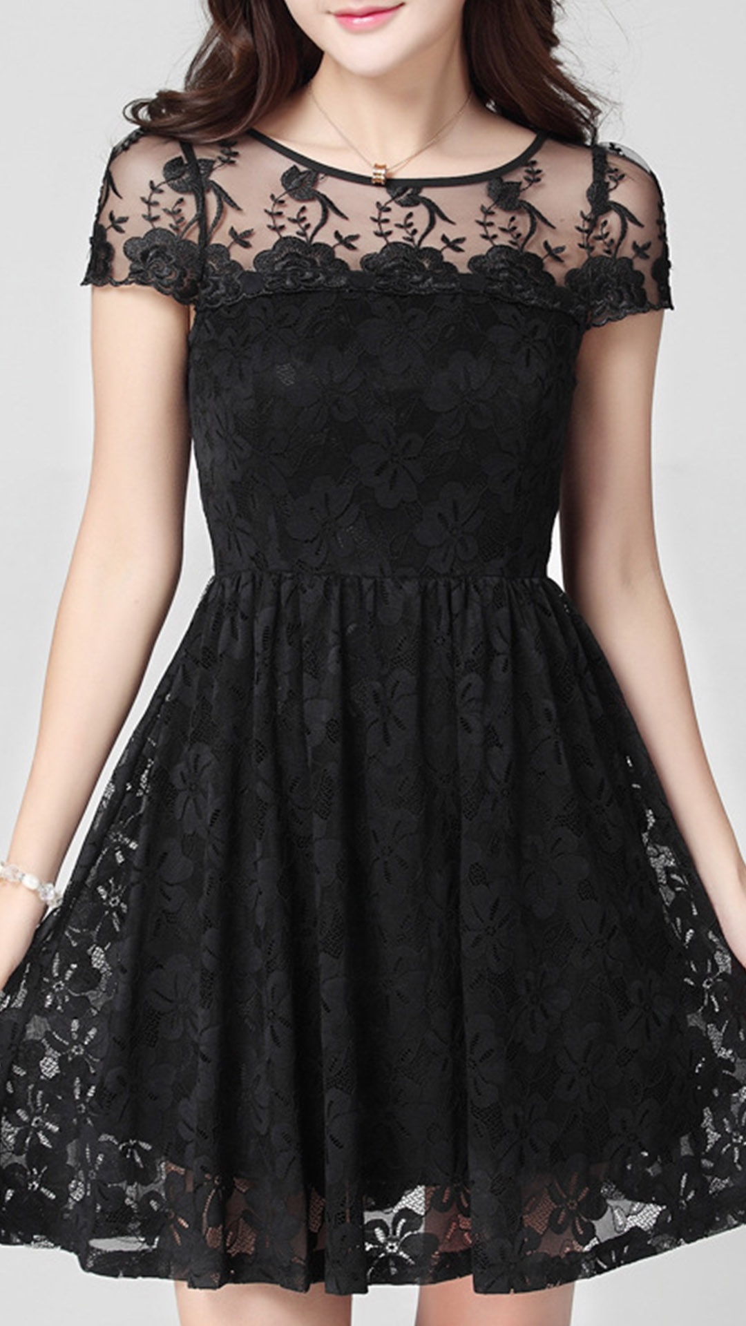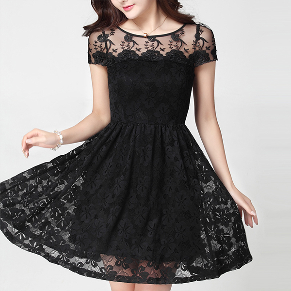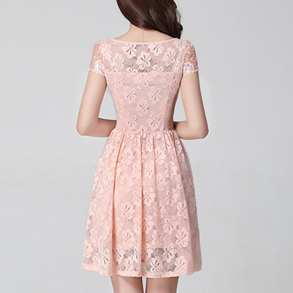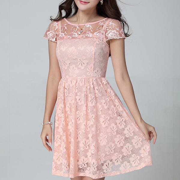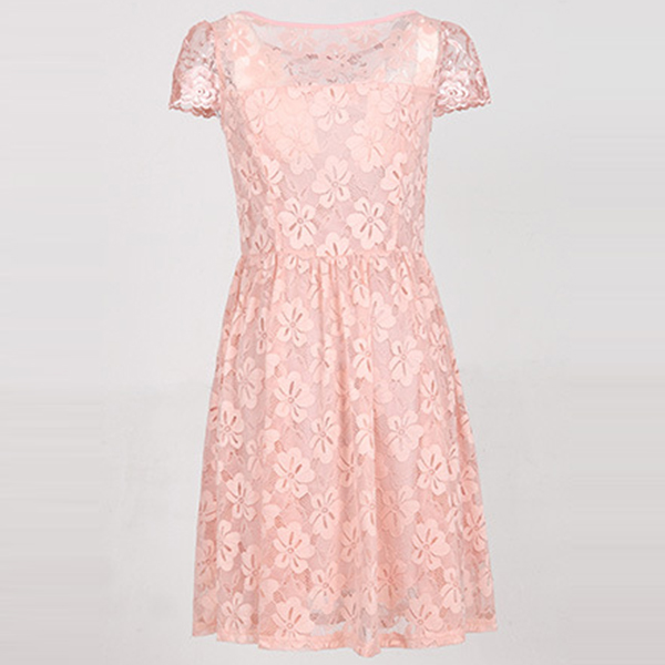 Elegant Crew Neck Short Sleeve Mini Lace Dress