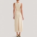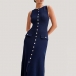 This knitted dress features crew neck, sleeveless and front button design, it offers a timeless and classic look. Crafted from high-quality knitted fabric, this dress is designed to be comfortable, cozy, and stylish.