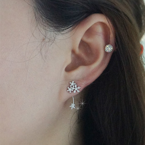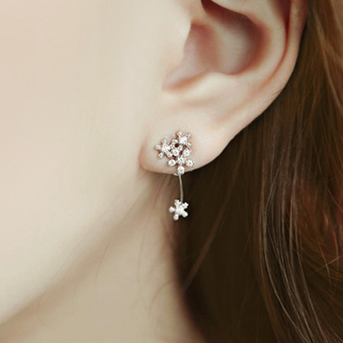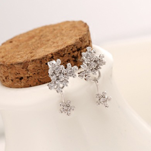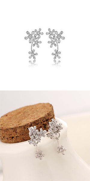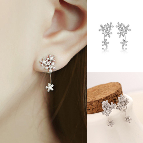 Elegant Delicate Flower Shaped Rhinestone Backear Stud Earring