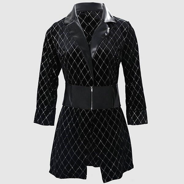 This is a perfect dress for a fashion dress for making a statement at any formal event! It features a diamond lattice pattern, adding a touch of elegance and glamour to the design. The spliced artificial leather PU material adds an element of edginess and texture to the dress, making it stand out from traditional formal wear. The notch lapel collar adds a refined touch to the design, making it perfect for events such as weddings or cocktail parties. Maybe you could have a try!