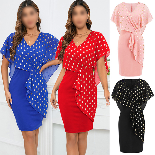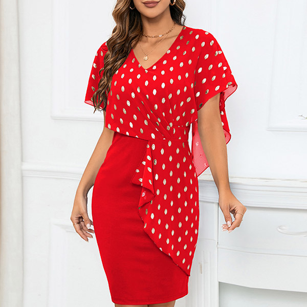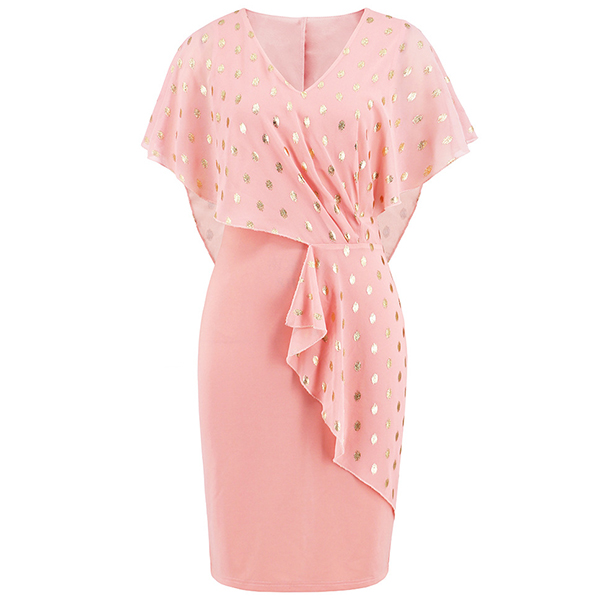 Elegant Dot Printed Chiffon Spliced Bodycon Dress