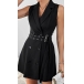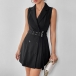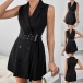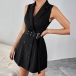 Elegant Double Breasted Notch Lapel Sleeveless Mini Dress with Belt