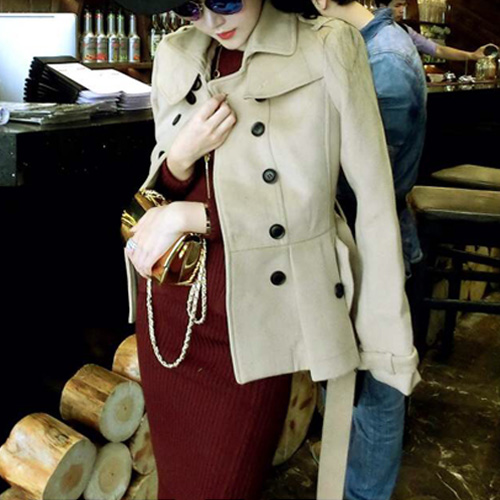 Keep your elegant temperament and fashion sense in this woolen coat. It features solid color style,long sleeve and double-breasted design. With sash design to help gather your waist and show your slender figure.