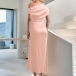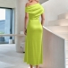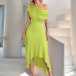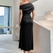 Elegant Draped Slant Shoulder Irregular Hemline Dress
