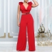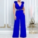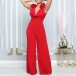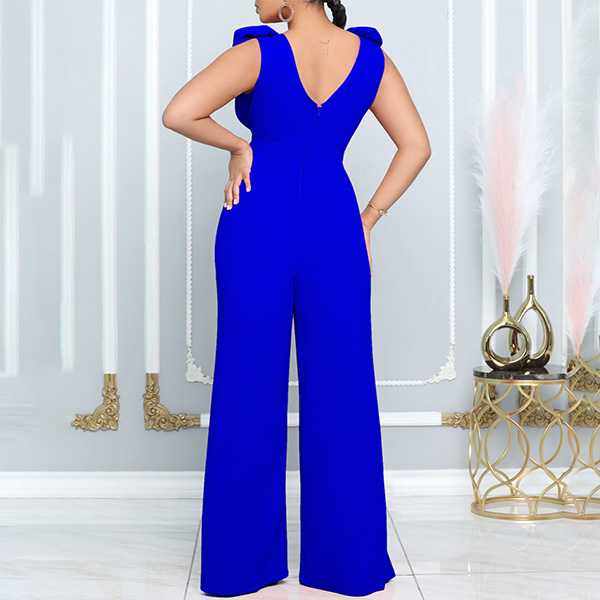 Elegant Draped V-neck 3D Rose Deocation Sleeveless High-rise Wide-leg Jumpsuit