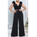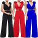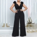 This elegant jumpsuit features a draped V-neck neckline, 3D rose decoration on the shoulder, high-rise waist, and wide-leg pants. Is it your style?