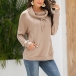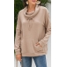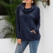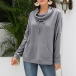 Elegant Drawstring Draped Round Neck Long Sleeve Front Kangaroo Pockets Shirt