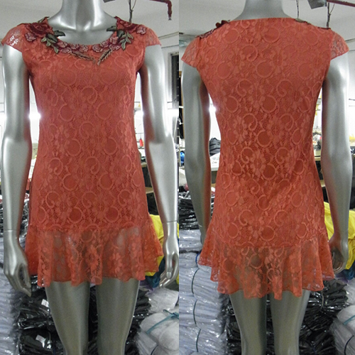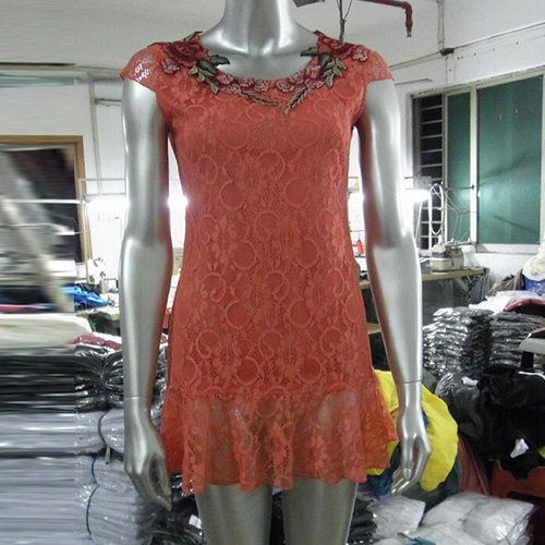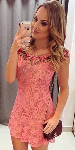 with short sleeve,round neck,flouncing hemline and fit silhouette. Plus,its embroidered