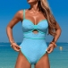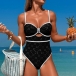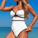 Elegant Eyelet Textured One-Piece Swimsuit - Contrast Color Trim & Cutout Detail
